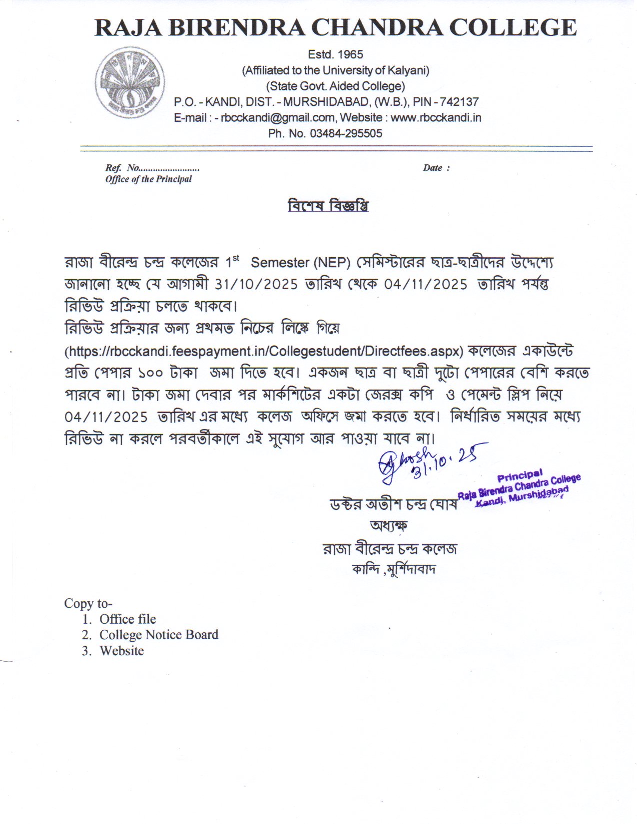 | 7 | Notice Regarding 1st Semester Review (NEP) | 31/10/2025 | |