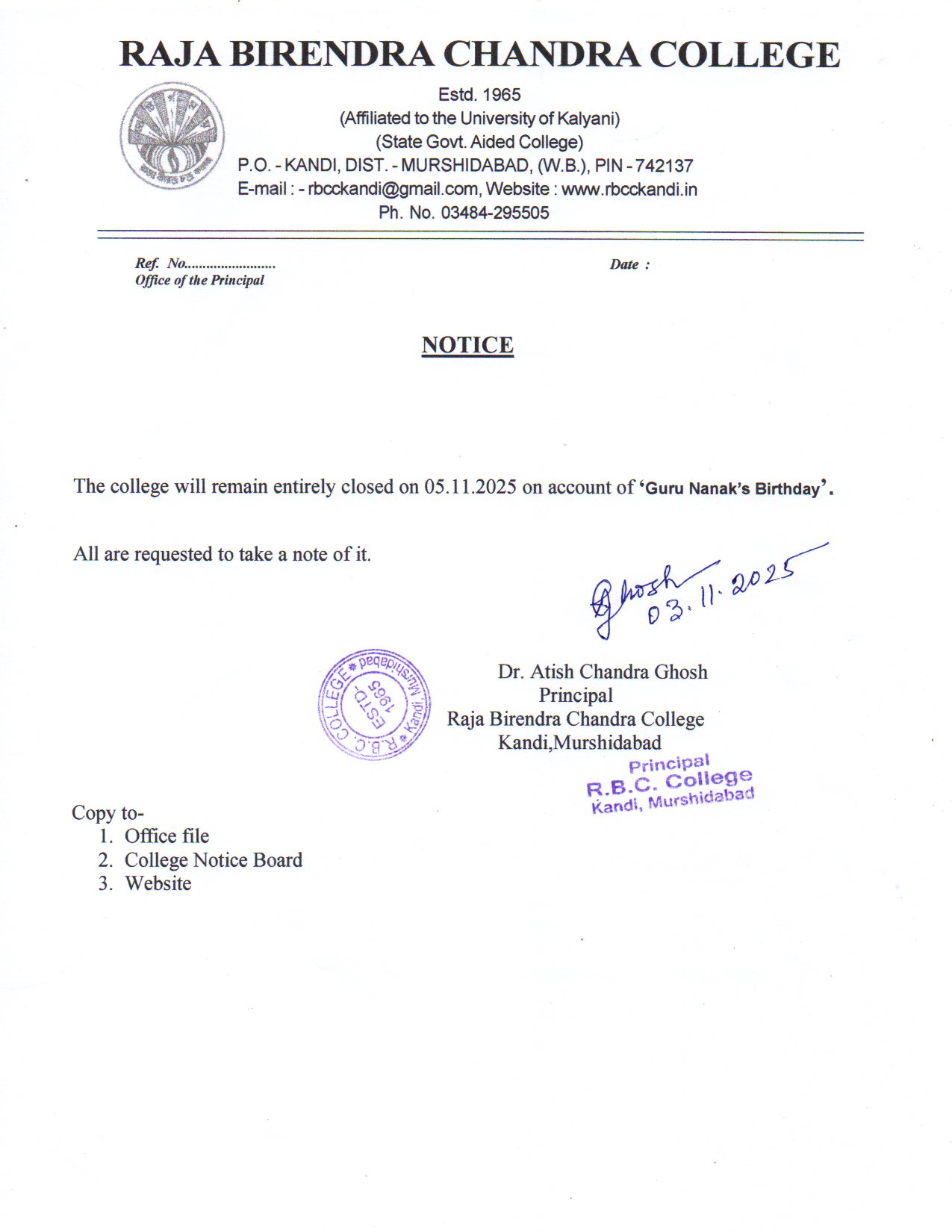 | 4 | Holiday Notice | 03/11/2025 | |