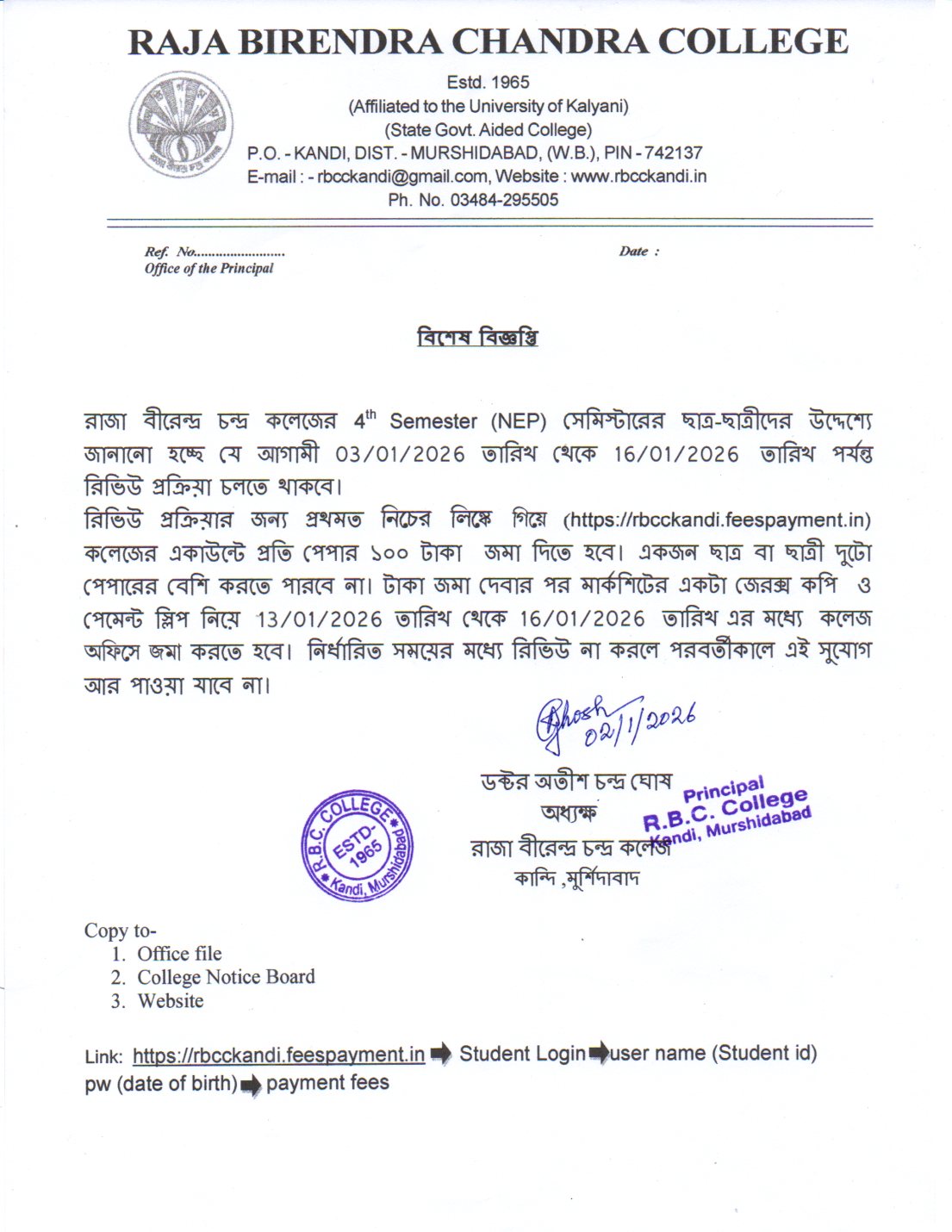 | 1 | Notice Regarding 4th Semester Review (CBCS ) | 05/01/2026 | |