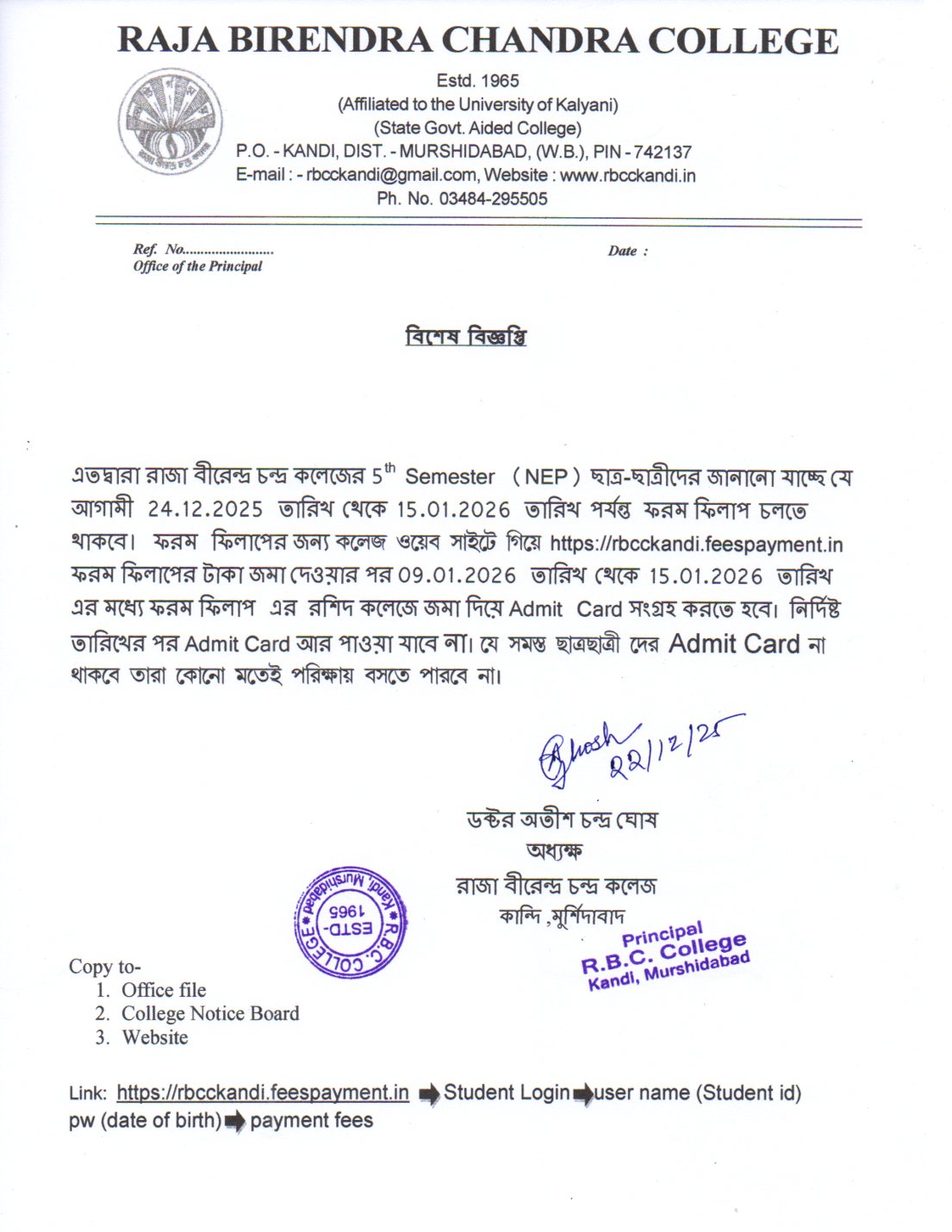 | 9 | Notice Regarding 5th Semester Form fillup (CBCS) | 04/12/2025 | |