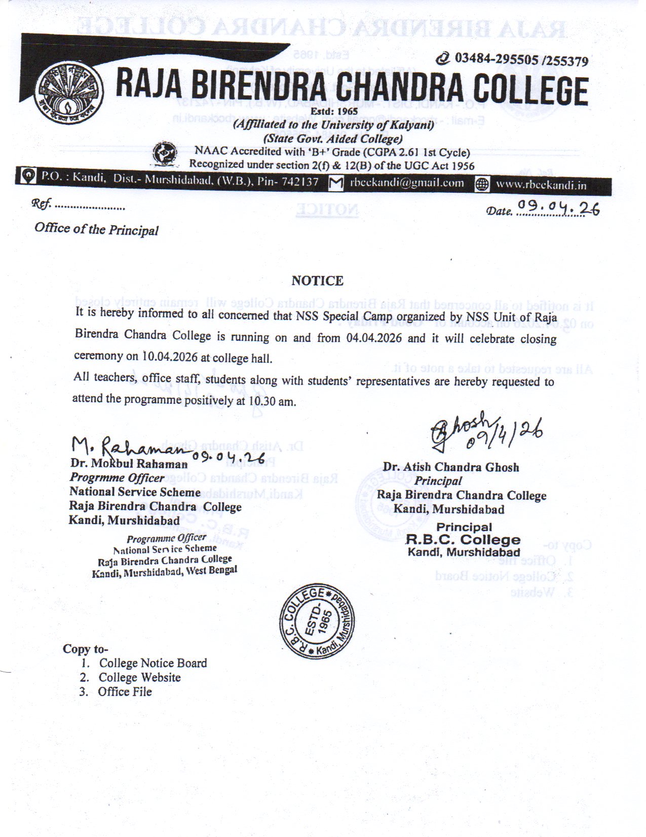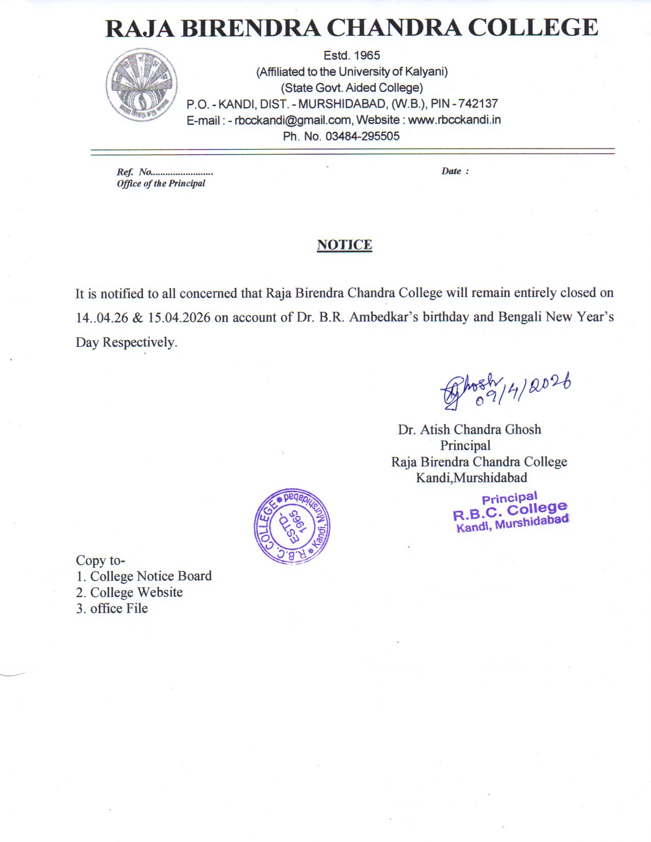 | 28 | Notice Regarding 3rd Semester Form fillup (CBCS) | 07/02/2026 | |
