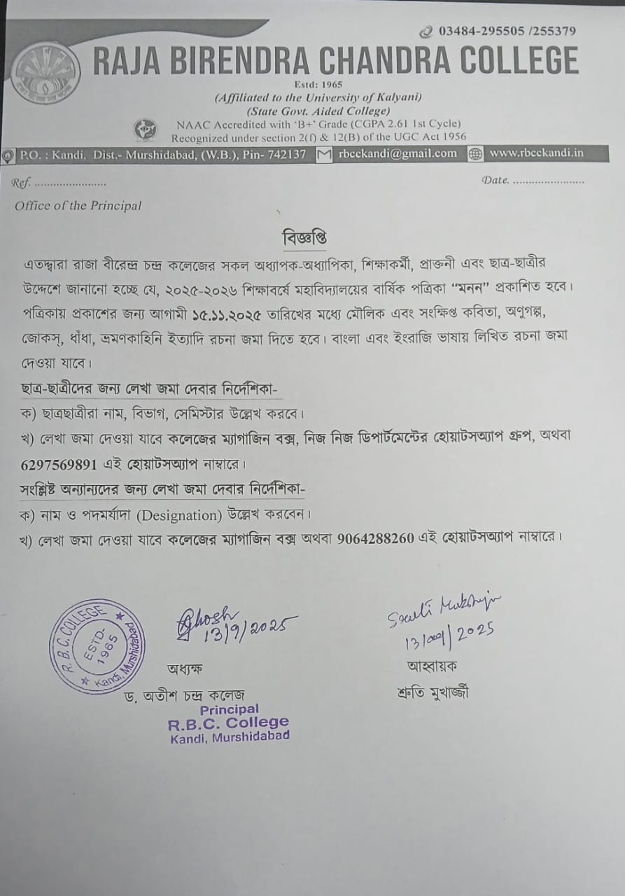 | 20 | Notice Regarding 1st Semester Review (NEP &CBCS) | 09/09/2025 | |