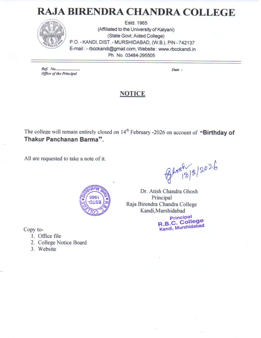 | 4 | Notice Regarding 3rd Semester Form fillup (CBCS) | 07/02/2026 | |