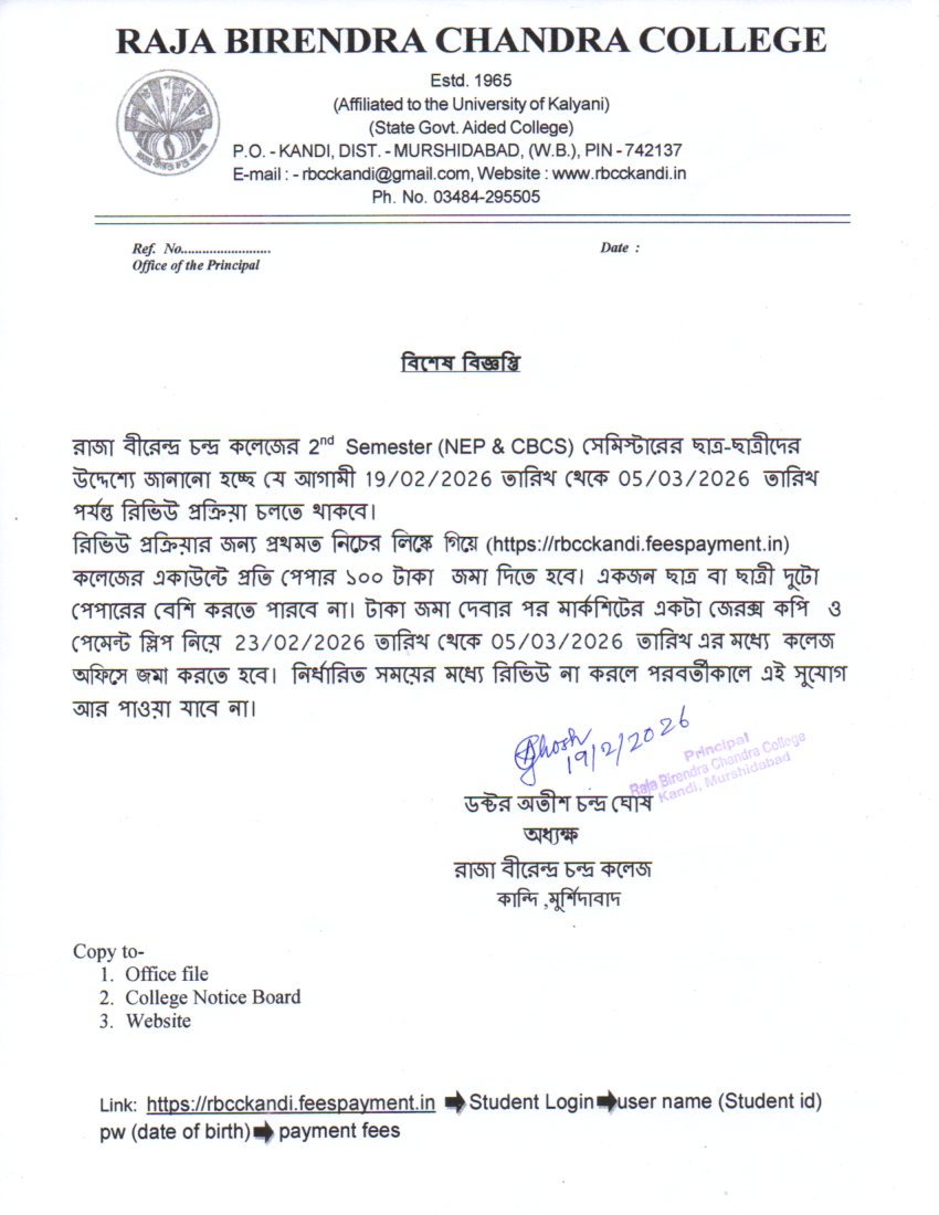 | 2 | Notice Regarding 2nd Semester Review (CBCS& NEP) | 18/02/2026 | |