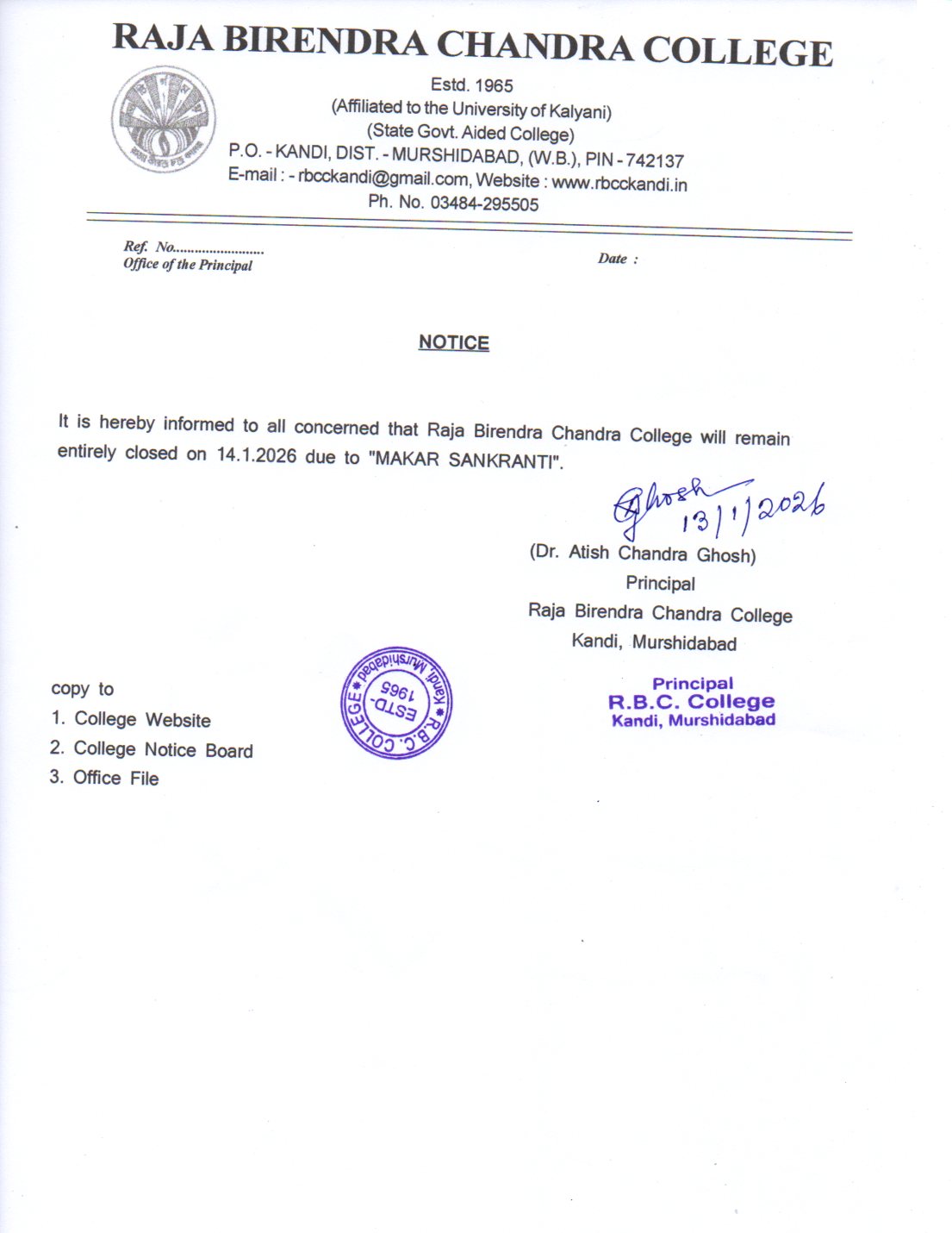 | 1 | Holiday Notice | 13/01/2026 | |