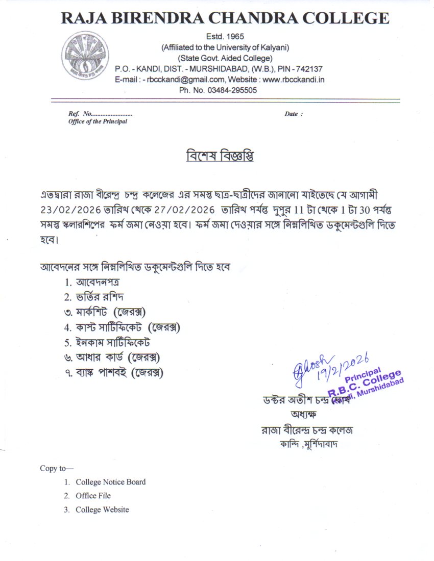 | 1 | Notice Regarding Scholarship | 19/02/2026 | |