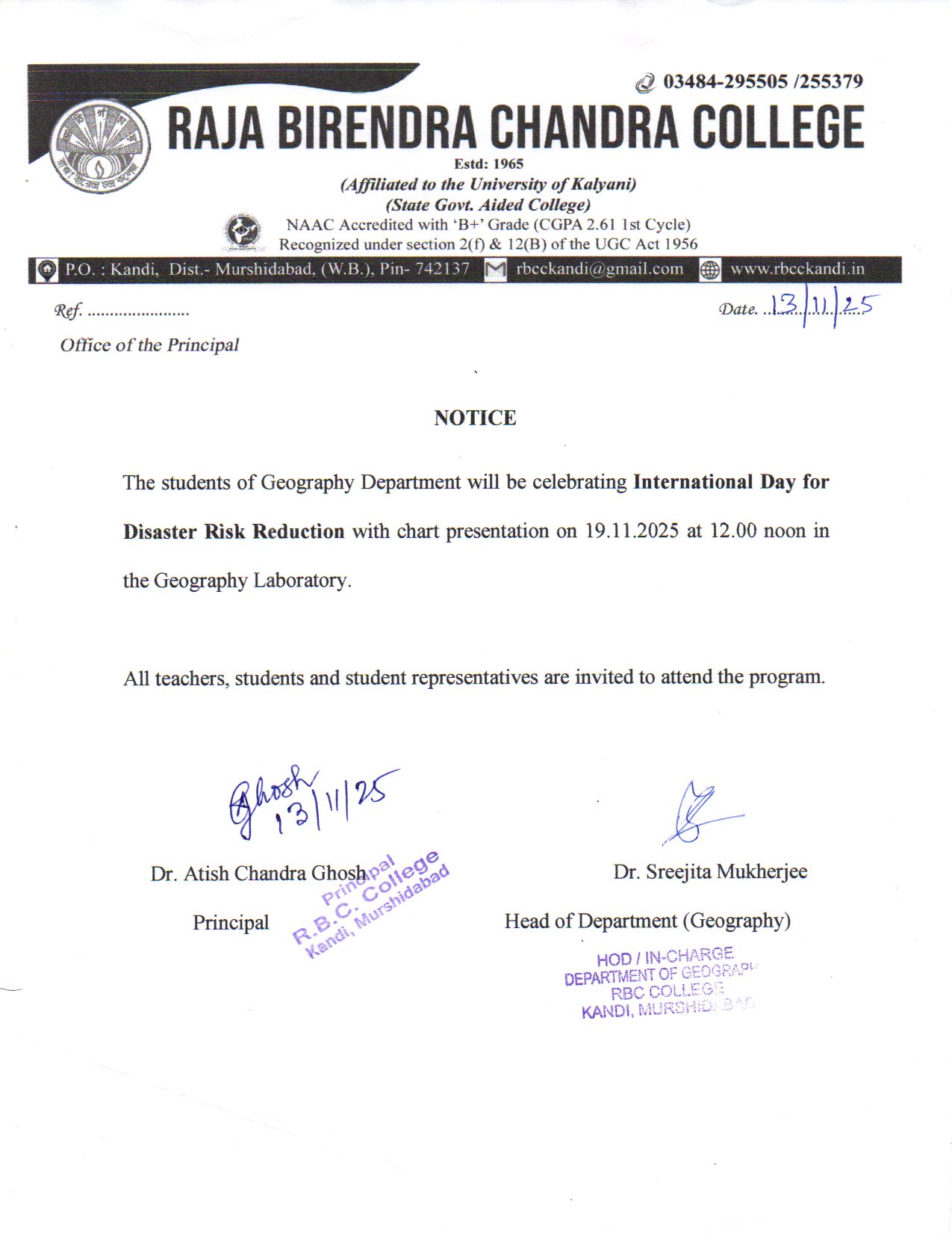 | 6 | Notice Regarding 6th Semester Review (CBCS) | 31/10/2025 | |