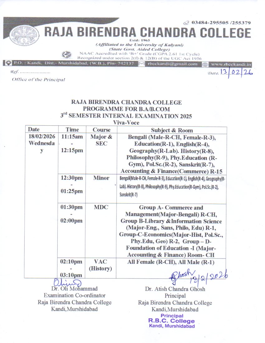 | 1 | Notice Regarding 3rd Semester Internal Examination -2025 | 13/02/2026 | |