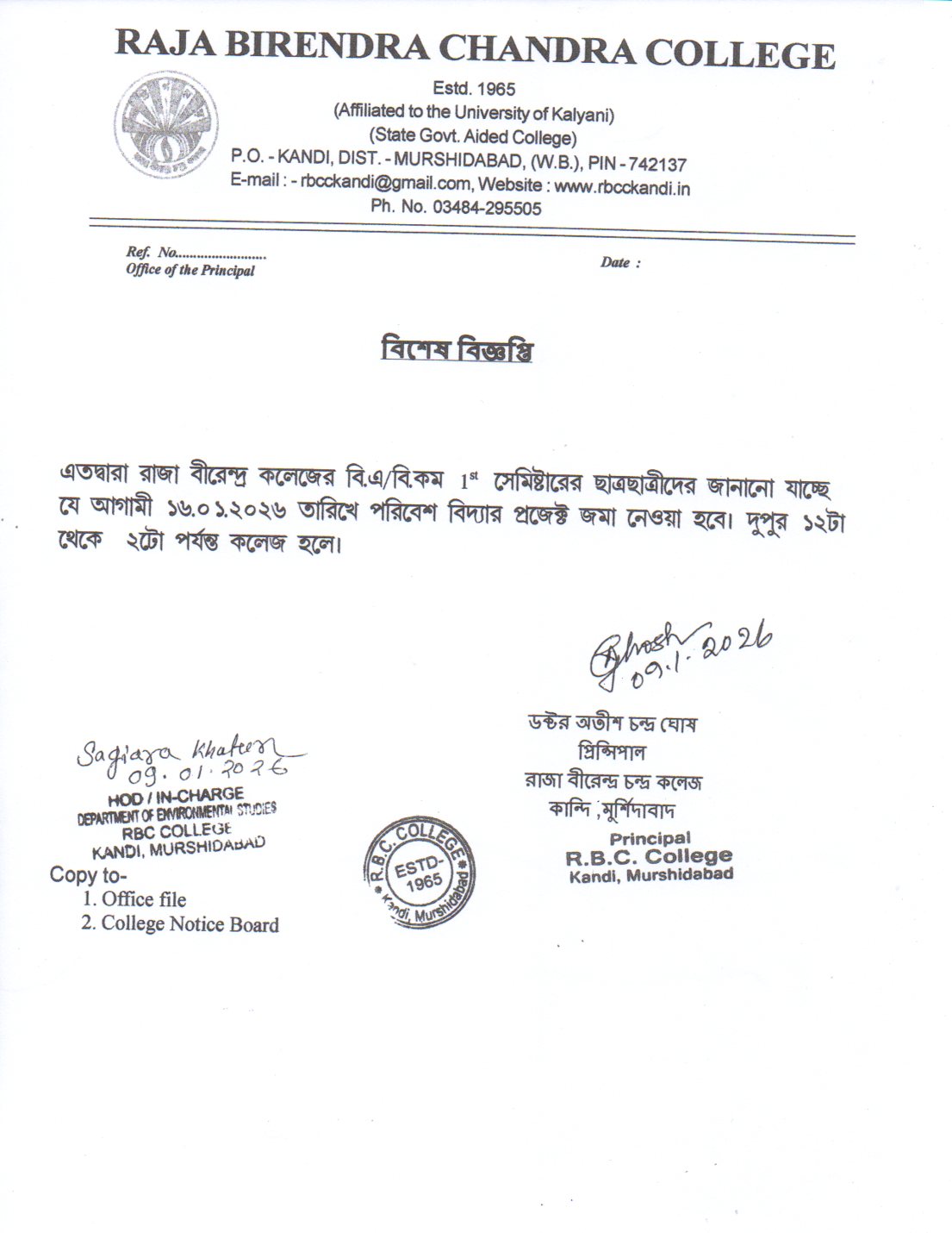 | 483 | Environmental Studies Project for 1st Semester Students Notice | 05/01/2023 | |